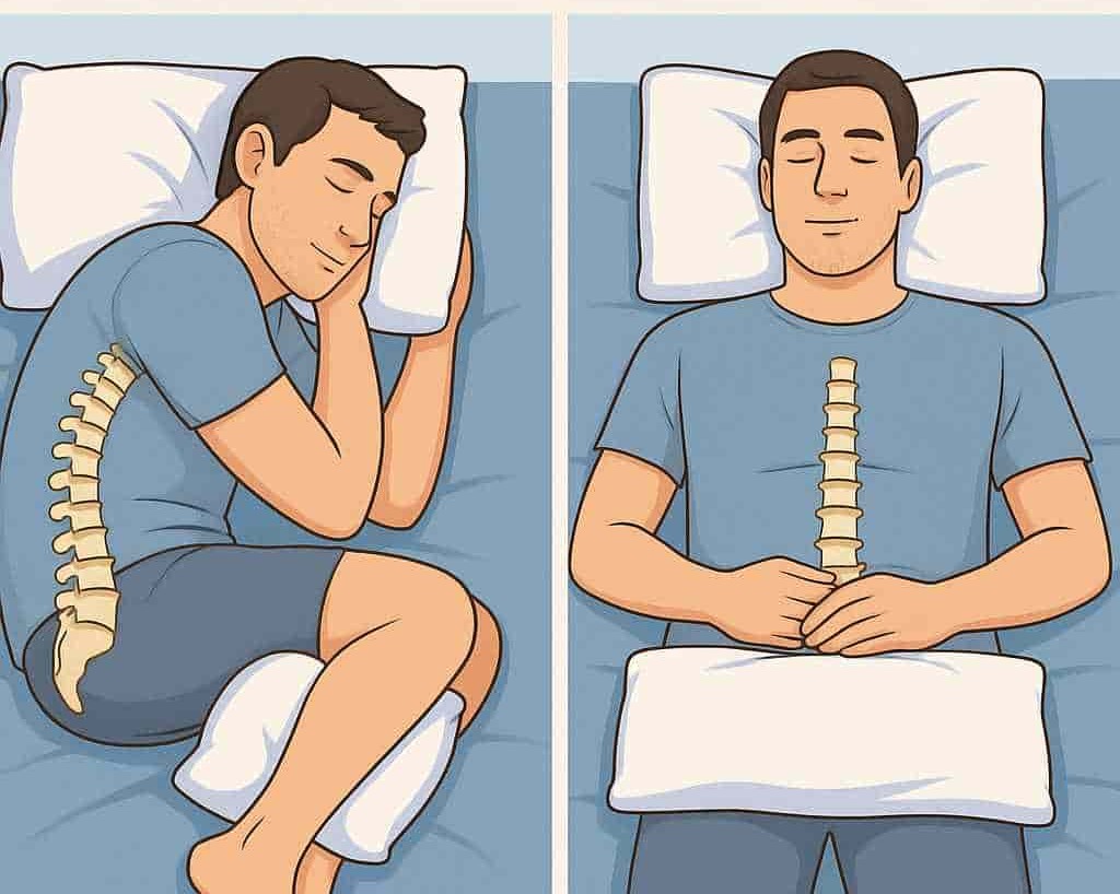 اگرچه خوابیدن به پهلو مفید است، اما جمع کردن بیش از حد پاها به داخل بدن باعث خمیدگی غیرطبیعی ستون فقرات شده و برای دیسک کمر مضر است.