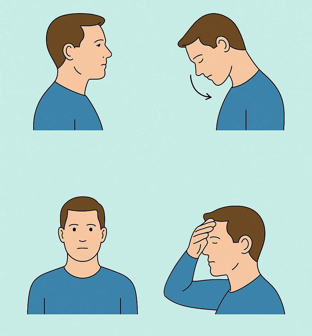به آرامی سر را به جلو خم کنید تا چانه نزدیک سینه شود.