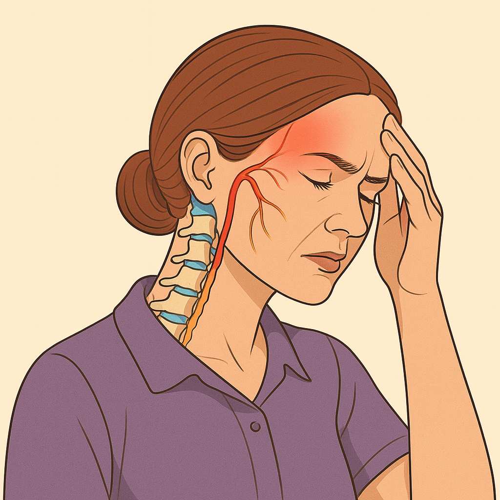 علت اصلی، فشار مکانیکی یا التهاب در مسیر عصبهایی است که از گردن به سر میروند. وقتی دیسک بین مهرههای گردن بیرون میزند یا تغییر شکل میدهد، بافت اطراف آن تحریک شده و پیام درد به مغز ارسال میشود. در نتیجه مغز این درد را بهصورت سردرد تفسیر میکند.