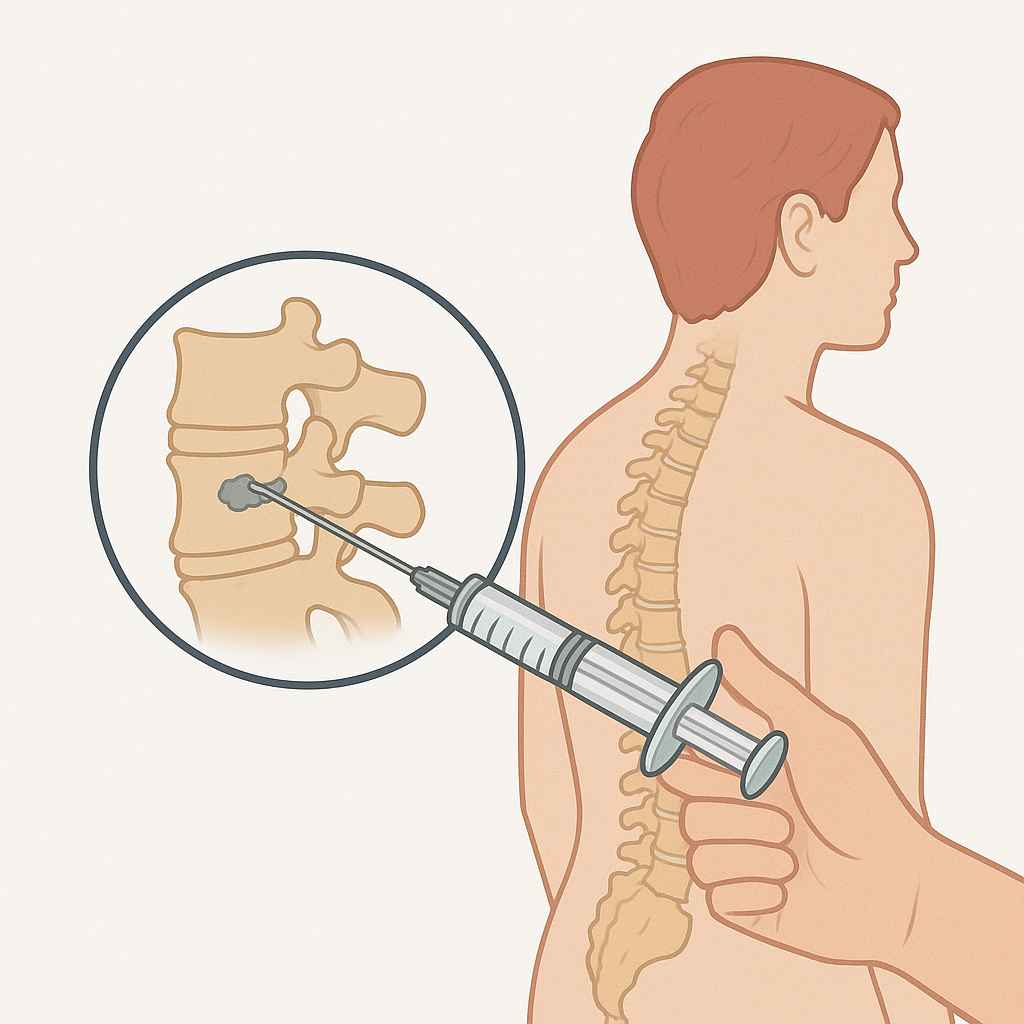 یک سوزن باریک تحت هدایت تصویربرداری وارد مهره میشود.