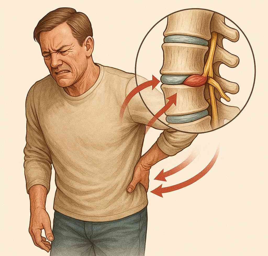 بین مهره های ستون فقرات بالشتک هایی به نام دیسک وجود دارد که ضربه ها را جذب می کنند و باعث حرکت روان ستون فقرات می شوند. وقتی دیسک آسیب می بیند یا جابه جا می شود، ممکن است به ریشه های عصبی یا حتی نخاع فشار بیاورد. این فشار می تواند باعث درد، بی حسی، ضعف عضلانی یا علائم جدی تر شود.
