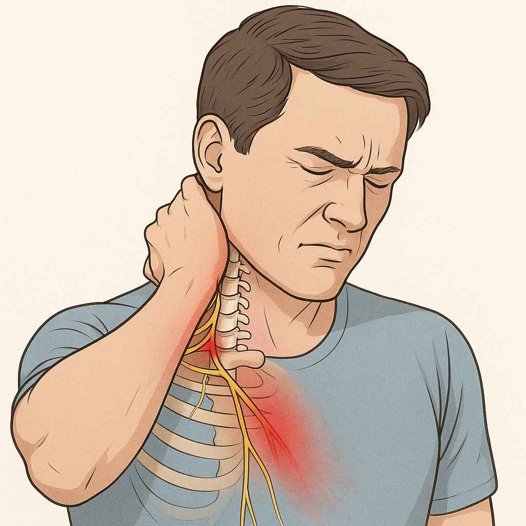 وقتی بیماری از درد دست و بی حسی انگشتان شکایت می کند و همزمان در گردن نیز احساس درد یا گرفتگی دارد، اولین احتمال این است که یکی از ریشه های عصبی در ناحیه گردن تحت فشار قرار گرفته باشد. بسیاری از بیماران این حالت را با نام اشتباه «سیاتیک گردن» توصیف می کنند؛ در حالی که از نظر علمی، عصب سیاتیک در ناحیه کمر و پا قرار دارد.