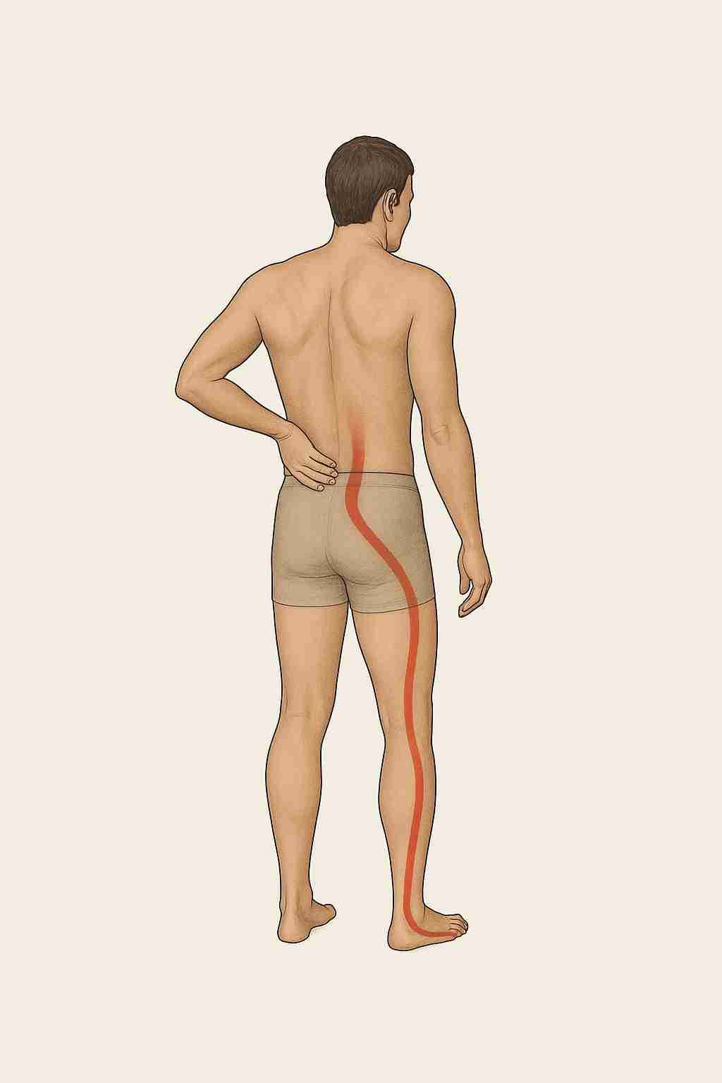اگر درد از کمر به پا در یک خط مشخص تیر می کشد، احتمال سیاتیک زیاد است. اما برای تشخیص قطعی باید معاینه و در صورت نیاز ام آر آی انجام شود.